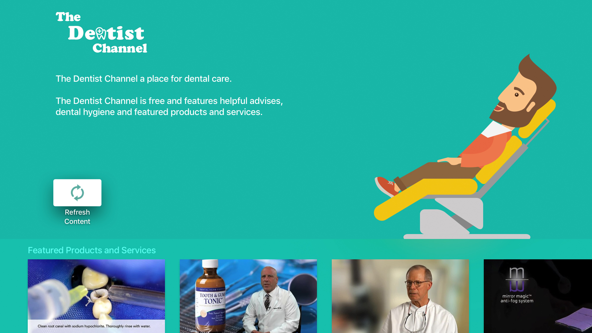 The Dentist Channel is free and features helpful advises, dental hygiene and featured products and services.
