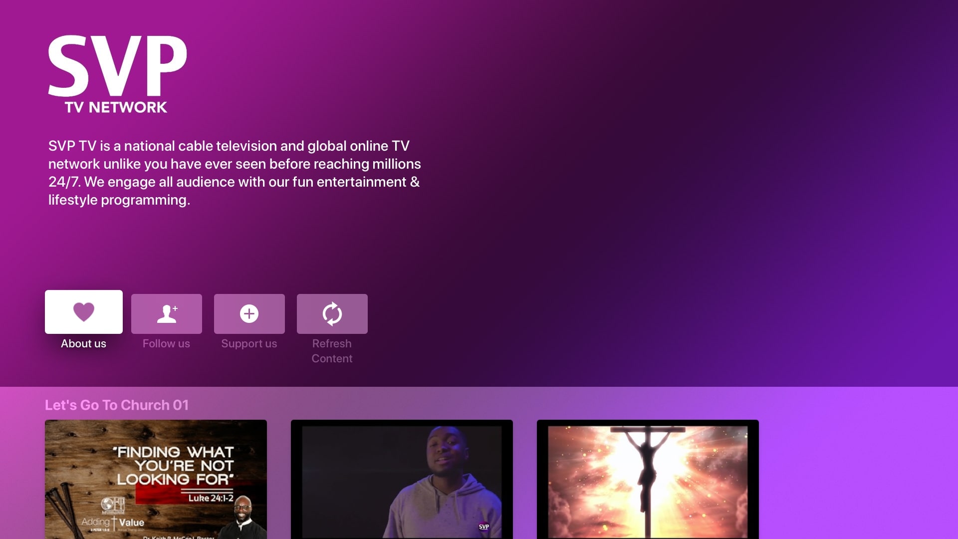 The media content of this channel is available on Apple TV. You need a Apple TV 4th Gen or newer in order to watch it.