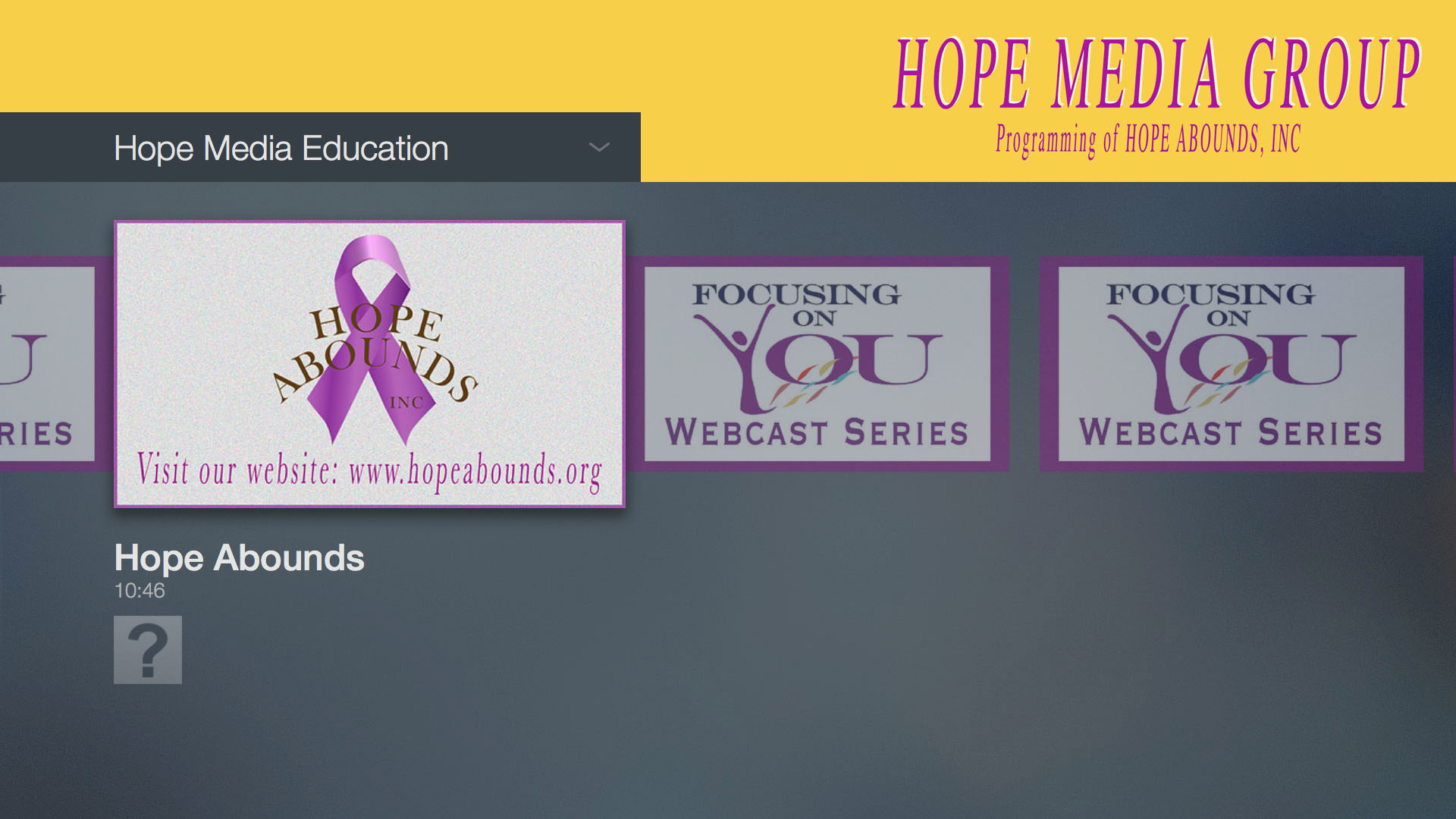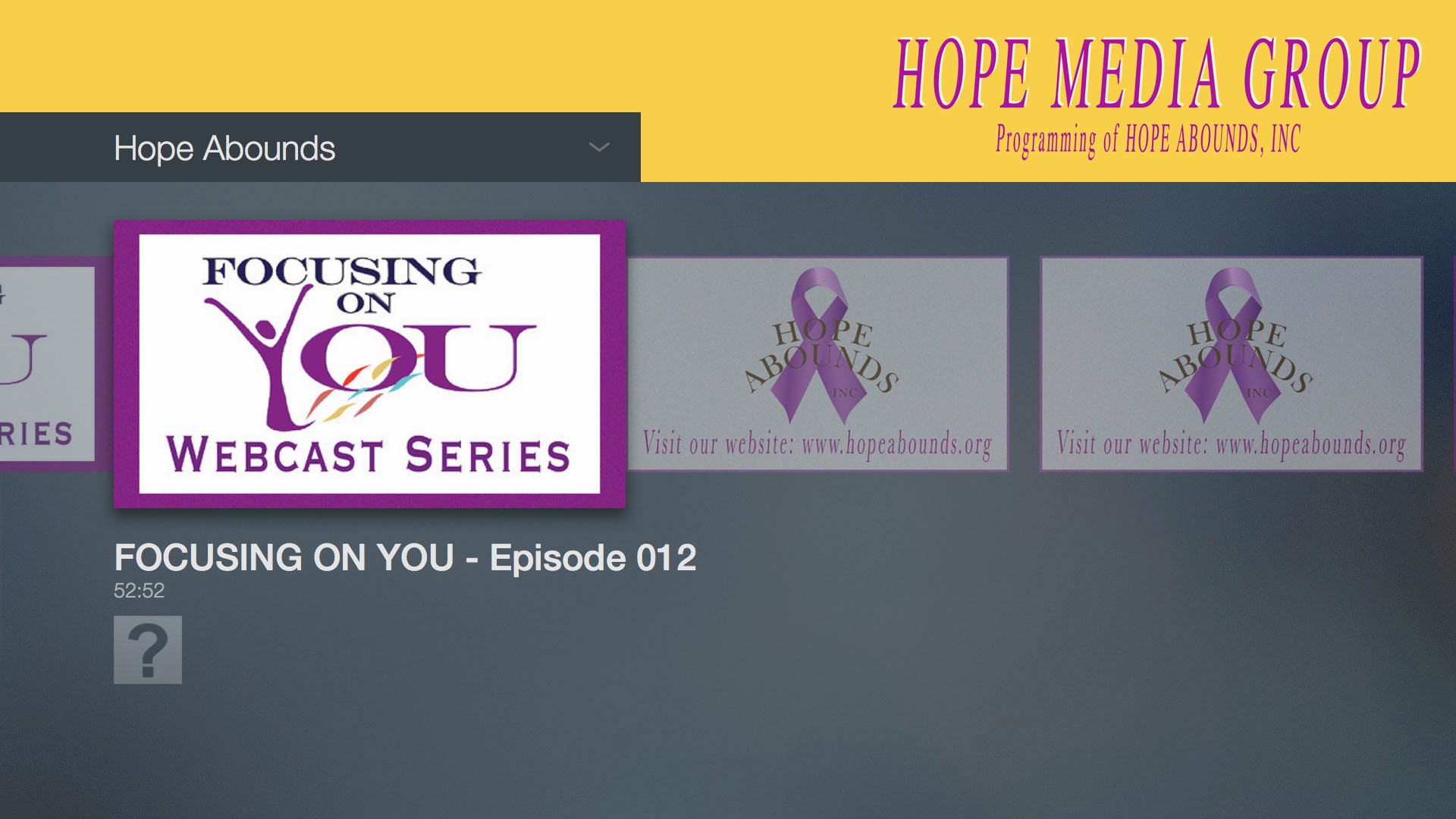 Hope Media Group provides the educational programming of Hope Abounds, Inc. From LIVE STREAMING programs to recorded interviews and events with medical professionals and survivors, Hope Abounds will broadcast encouragement and education for everyone.
