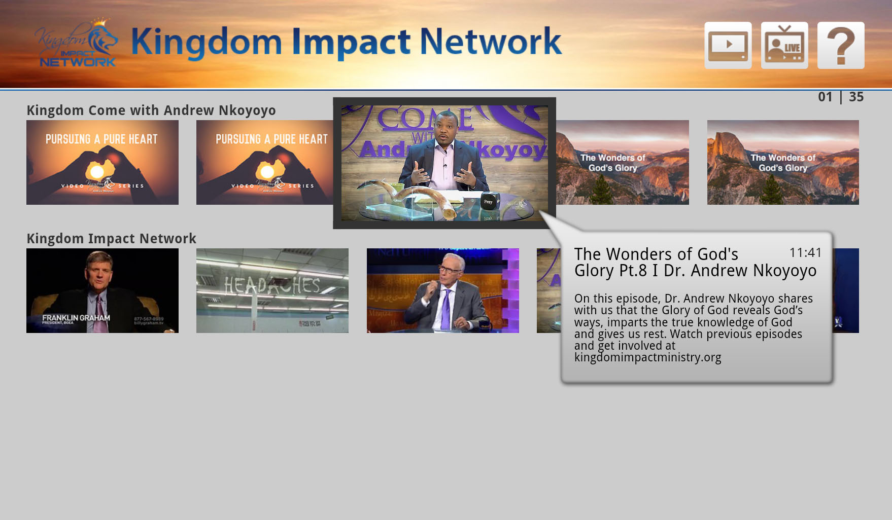 Kingdom Impact Network is a Christian broadcasting network available on LIVE TV and On-Demand 24/7 worldwide on Roku, Amazon Fire TV, Google TV, Chromecast, and on www.kingdomimpactministry.org and www.kingdomimpactnetwork.com. Experience God's Word and power through the Kingdom Come and Preparing The Way TV broadcasts with Dr. Andrew Nkoyoyo and his guests. Watch Christian worship and gospel music, christian movies, Bible Study, Sid Roth' It's Supernatural, online sermons, christian movies for kids, free christian movies online, on-demand or Live TV free.