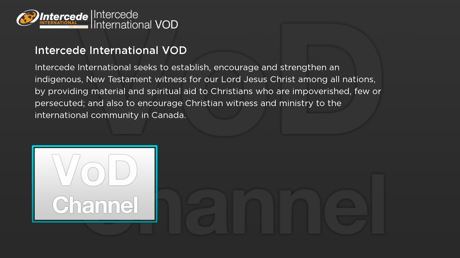 Intercede International seeks to establish, encourage and strengthen an indigenous, New Testament witness for our Lord Jesus Christ among all nations, by providing material and spiritual aid to Christians who are impoverished, few or persecuted; and also to encourage Christian witness and ministry to the international community in Canada.