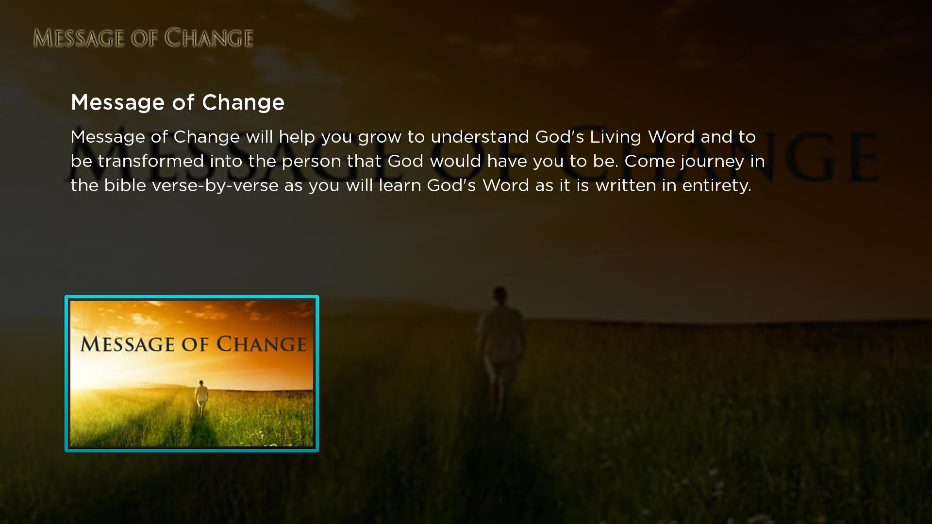 Message of Change will help you grow to understand God's Living Word and to be transformed into the person that God would have you to be. Come journey in the bible verse-by-verse as you will learn God's Word as it is written in entirety.